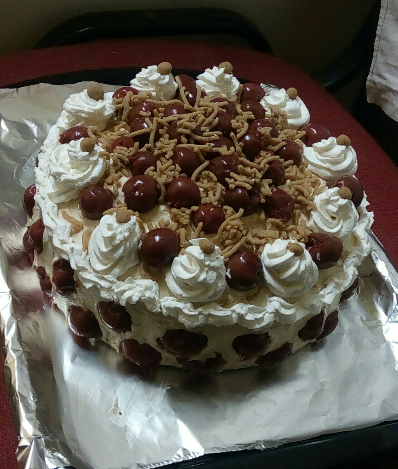 felverve a tetejére tesszük és az 50 g gesztenyepürével díszítjük. Én meggyszemeket is használtam. =)